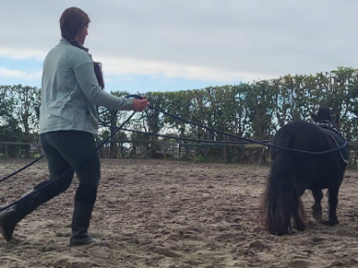 Het gebruik van de dubbele lange lijnen is een goede brug tussen het grondwerk en het rijden. Zo wordt het paard bewust van zijn lichaamsgebruik en reactie op twee lijnen zonder de rug van het paard met gewicht te belasten.